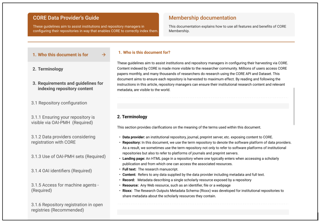 In an ongoing effort to help our Data Providers, CORE has introduced a detailed new guide that provides a wealth of information for repository managers and others. The new guide covers everything including how the repository should be configured for OAI-PMH. It is, sadly, a fairly common problem that the OAI-PMH endpoint of a repository is misconfigured or not functional. This can occur even when other functionalities of the repository appear to be working without issues. This has a huge impact on how visible the repository is to the outside world, and subsequent ramifications for the discoverability of its content.