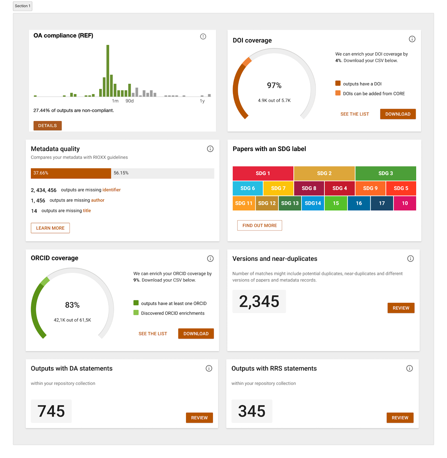 Over the next few posts, we’ll explore each of these dashboard areas in more detail. Our aim is to help repositories understand not only what the data shows, but how it can be applied to strengthen reporting, compliance, research visibility, and metadata quality.