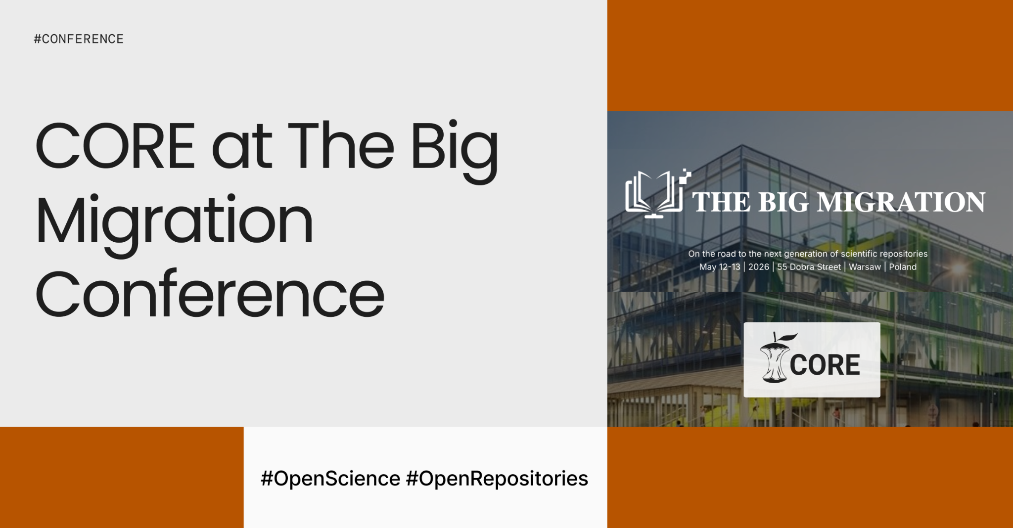 In just 17 days, CORE will be taking part in The Big Migration Conference, a gathering of people working across repositories, libraries, and research infrastructure to shape how scholarly communication continues to evolve.