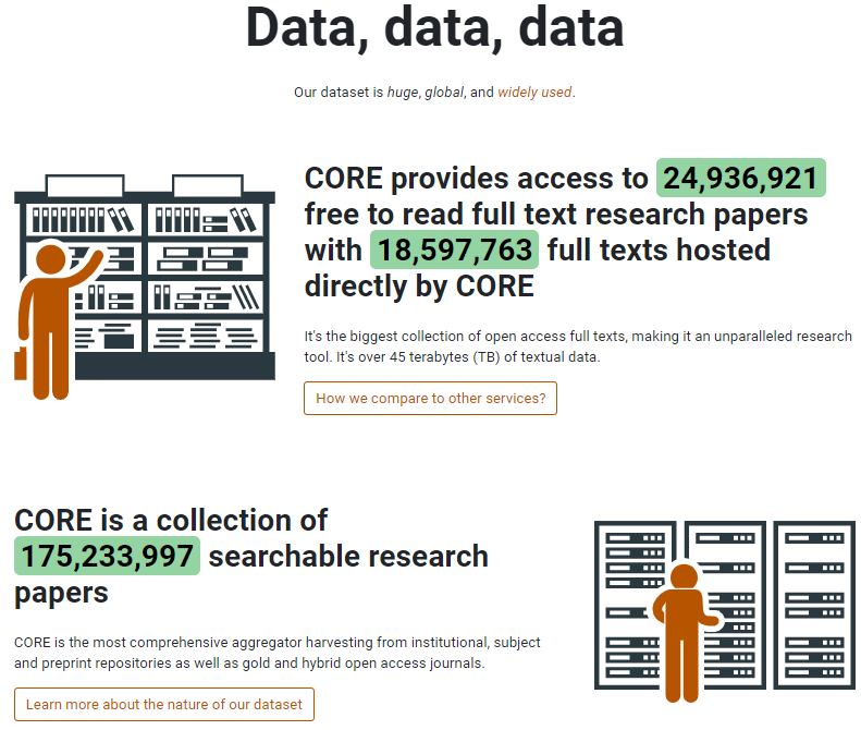 Since the start (10 years ago!) CORE’s mission has been to aggregate and facilitate access to Open Access scientific research at an unprecedented scale to both humans and machines. To achieve this aim, we are always refining and improving our methods for access and use of the CORE data.